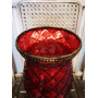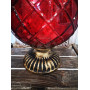 Červený sklenený rustikálny svietnik v tvare čaše.Svietnik je zvrchu zdobený kovovým starozlatým lemom, ktorý ladí s podstavcom. Svietnik môže slúžiť ako váza, svietnik alebo nádoba na aranžovanie.