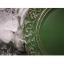 Zeleno zlatý štýlový klubový tanier s ornamentom na okraji. Je vhodný na aranžovanie pri rôznych príležitostiach.