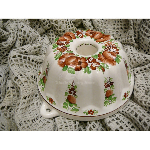 Ručne vyrábaná keramická forma na bábovku. 100% HAND MADE - ručne s láskou maľované... Keramika je vypaľovaná pri 750 stupňoch, čo zaručuje trvácnosť glazúrovaného povrchu. Bábovky sú nádhernou dekoráciou vo vidieckom štýle a zároveň praktickým pomocníkom každej domácej pani. Sú vhodné do všetkých bežných typov rúr na pečenie bábovky podľa Vášho obľúbeného receptu. Odporúčame ručné umývanie. Každý kus je ORIGINÁL, preto sa môžu rozmery a detaily vzorov odlišovať. Táto keramika je medzi zákazníkmi mimoriadne obľubená - tip: VHODNÝ DARČEK